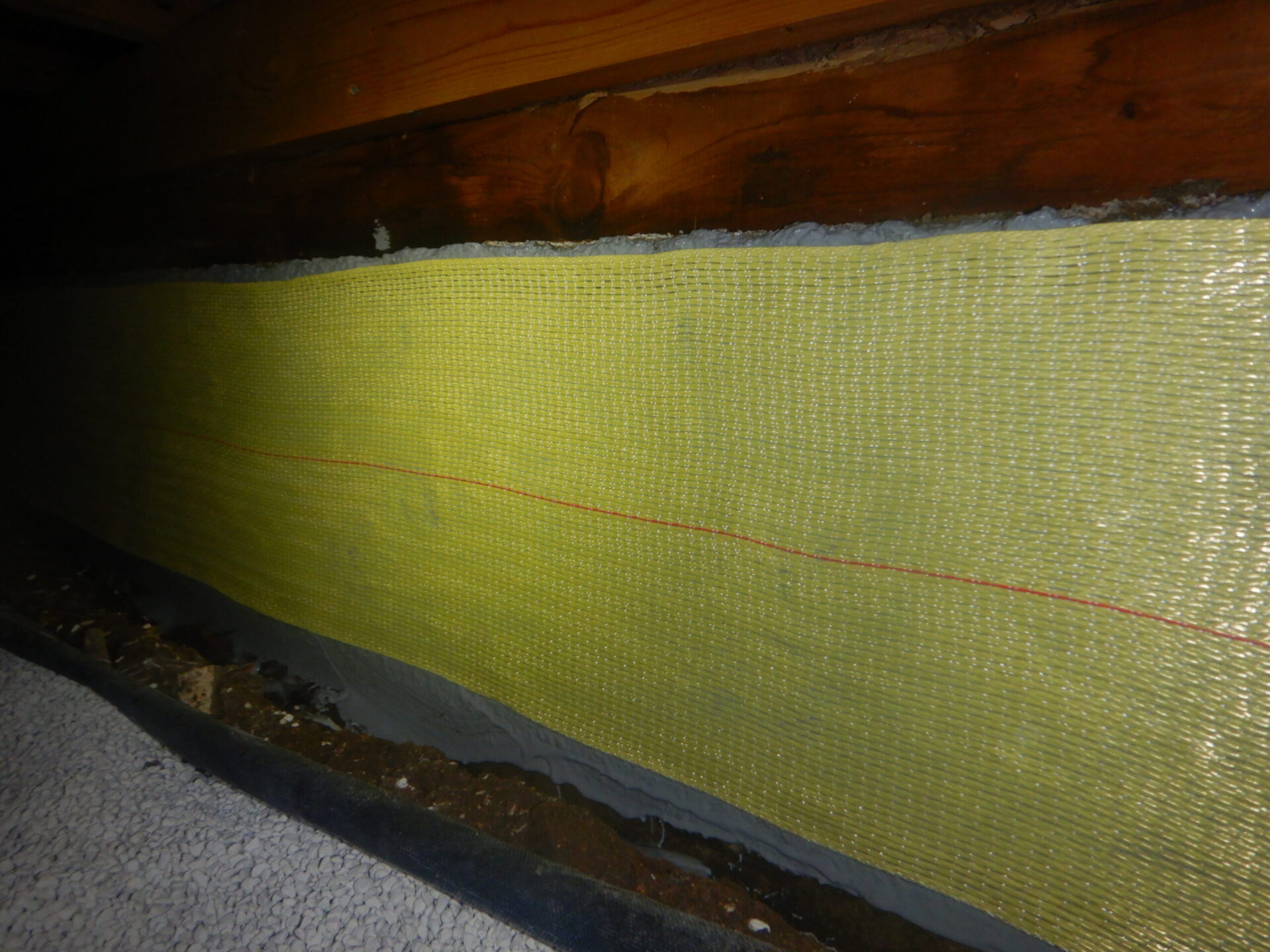 アラミド繊維シートとエポキシ樹脂の組み合わせで基礎の耐力を向上。
